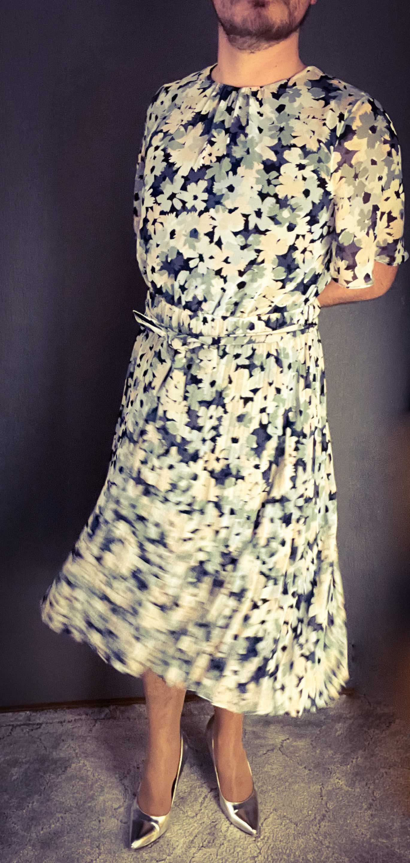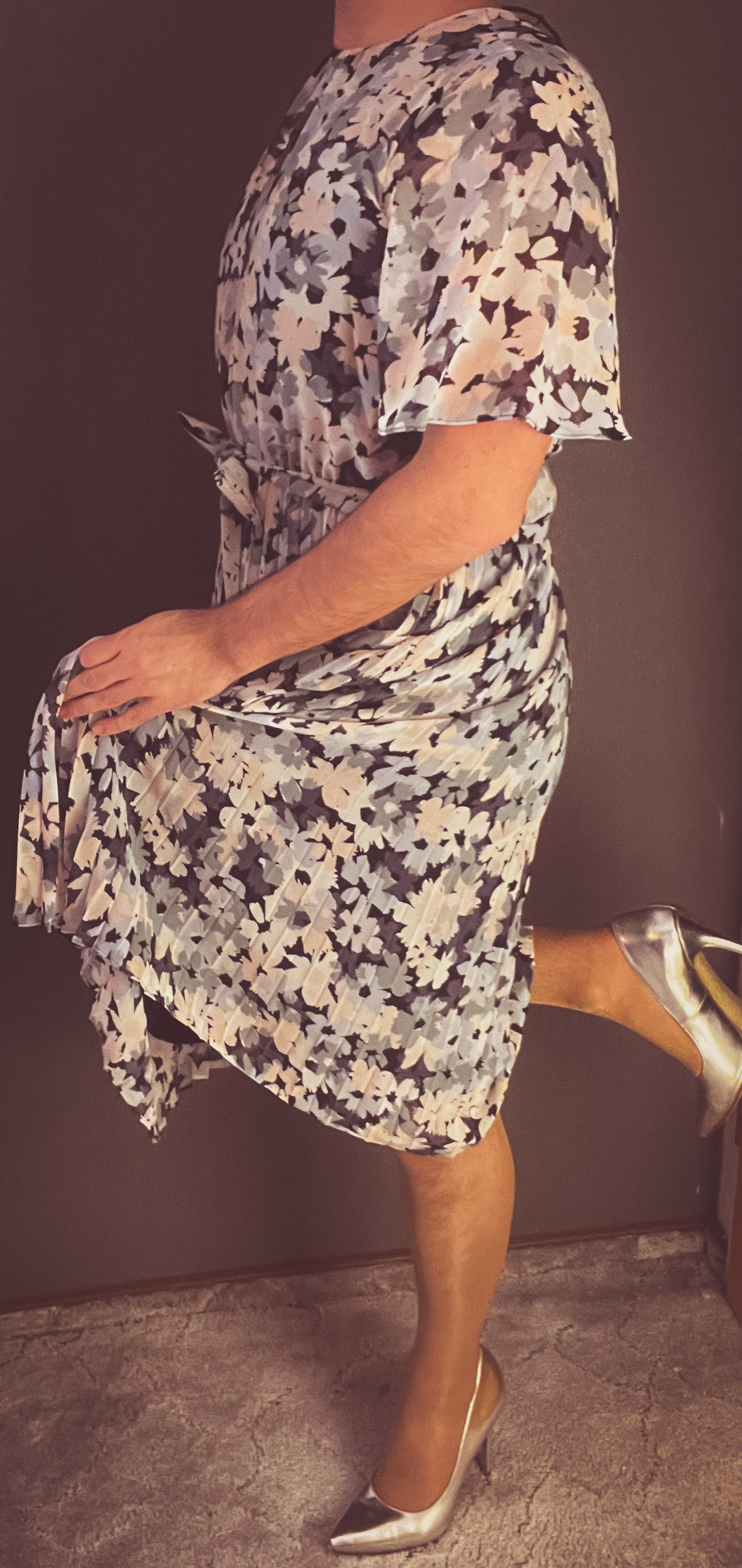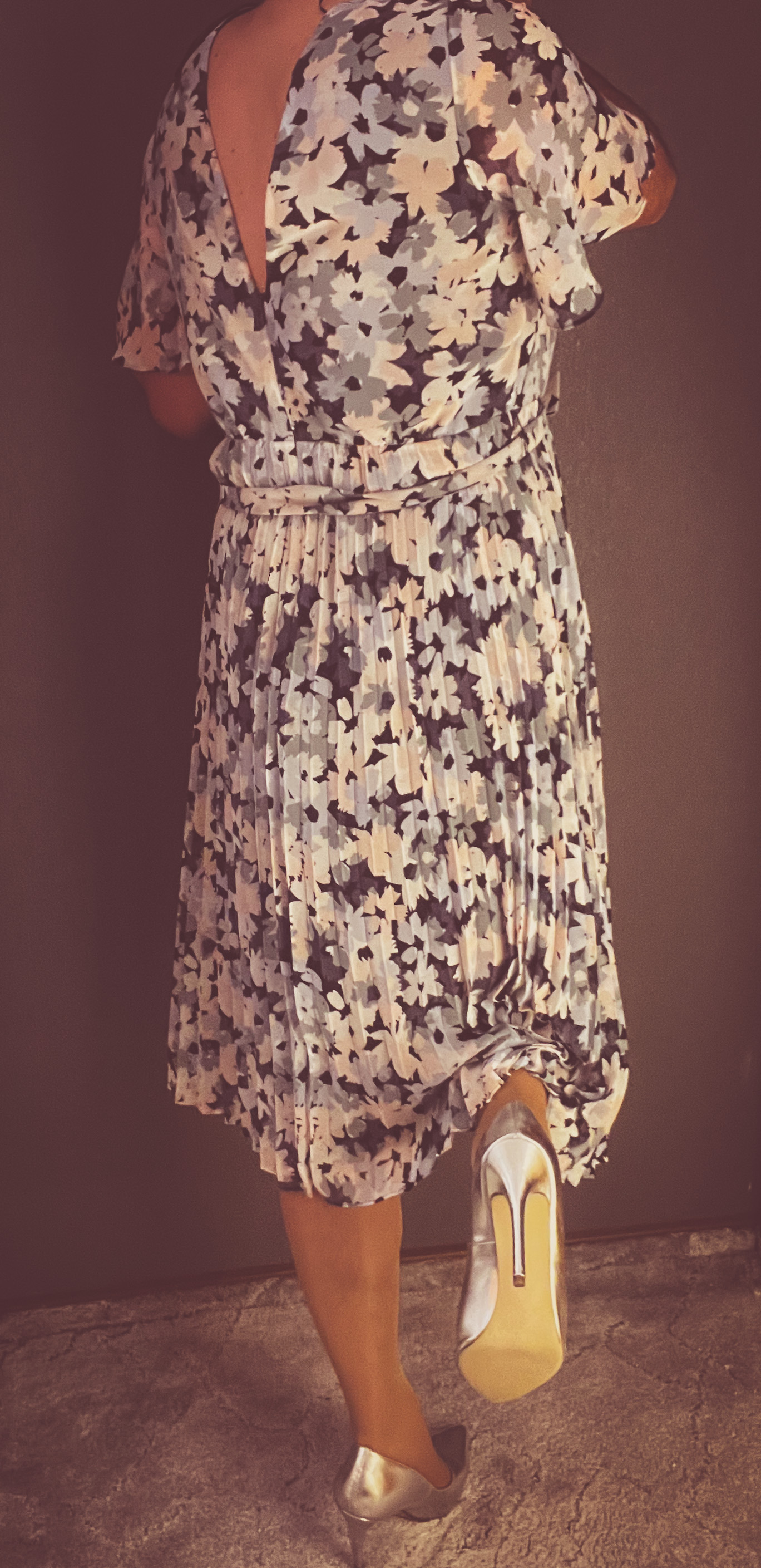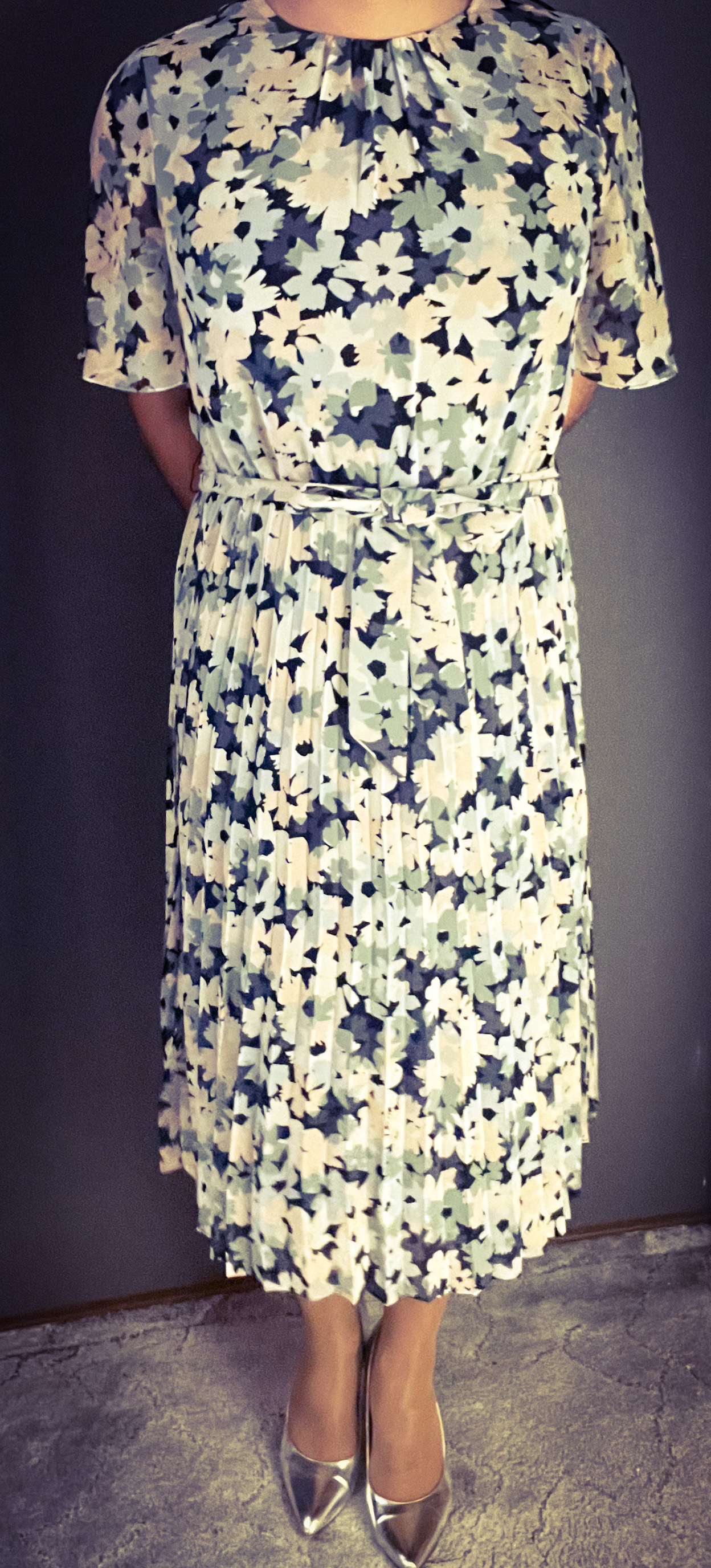 Das zweite neue Mitglied meines Kleiderschranks ist dieses wunderbare Plisseekleid. Es kommt stilvoll mit einem Bindegürtel daher und schwingt beim Gang energetisch und die Beine.